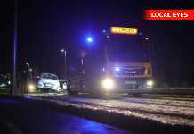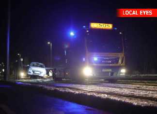 En stor sort hund var kommet på afveje. Den sad på en isflage og kunne ikke selv komme i land. Men en fisker tog det nødvendige udstyr på og hoppede i det iskolde vand og svømmede ud til hunden.