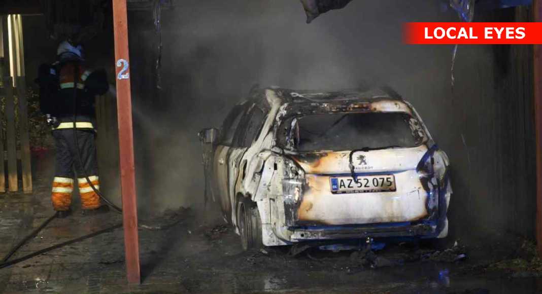 Heldigvis var der under branden ingen fare for beboerne, mens der der dog skete en hel del skade på selve carporten og et skur som lå tæt opad carporten – og ikke mindst bilen som udbrændte totalt.