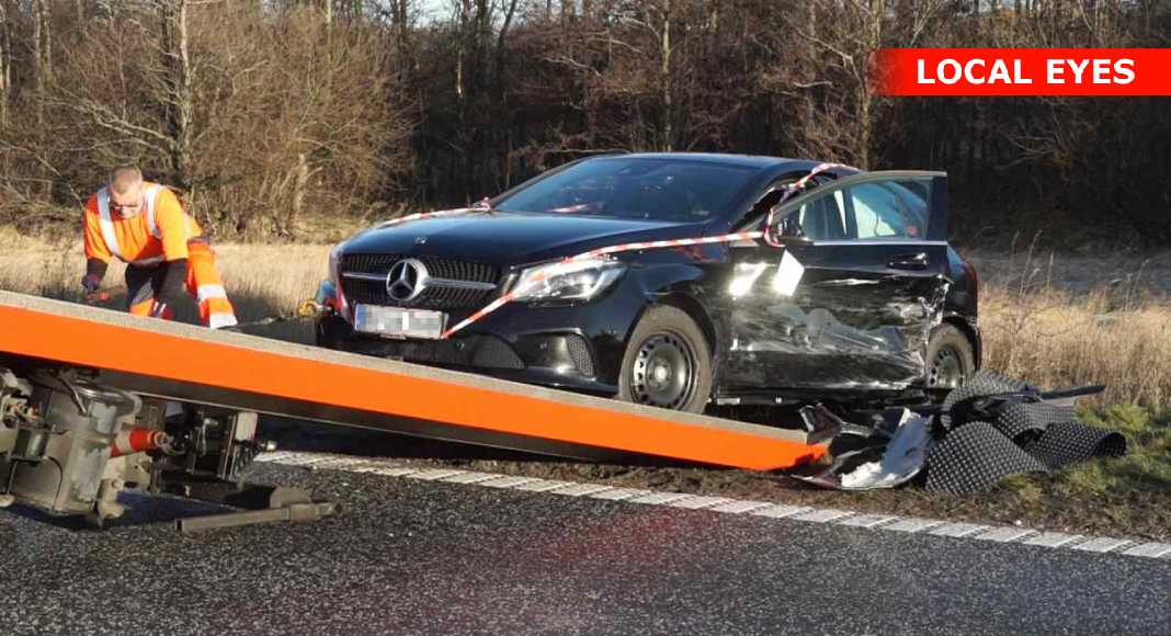 Mens ambulancer, politi og mandskab fra Falck stationen i Hillerød er optaget af de to uheld, sker der endnu et uheld – denne gang nord for det første uheldssted ved sneglen til Egespurs Allé – og implicerede to biler hvor en Mercedes var blevet påkørt bagfra med stor kraft af en mindre personbil.