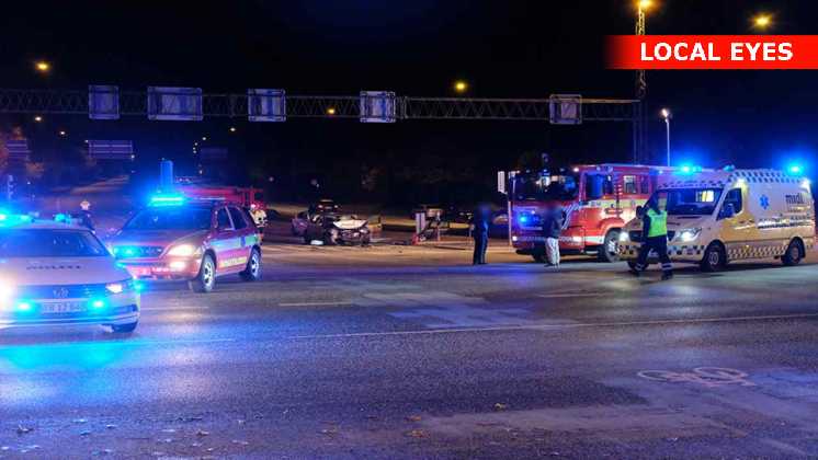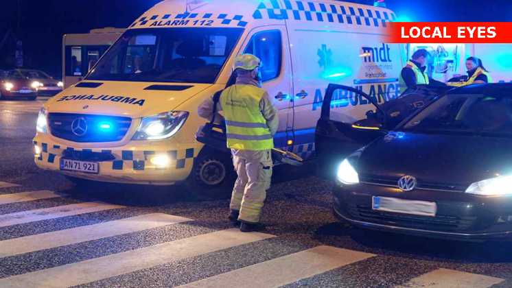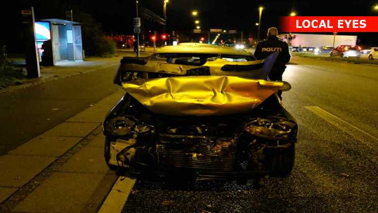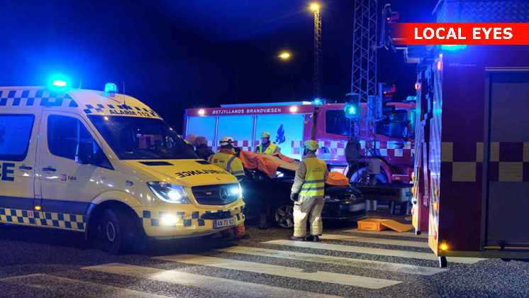 Vidner på stedet fortæller at begge biler kom i samme retning, og den forreste har bremset for gult lys, hvorefter den blev påkørt med sådan en kraft, at den blevet kastet helt over krydset.