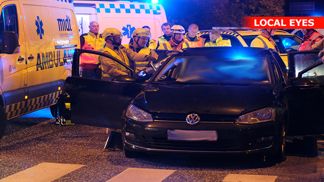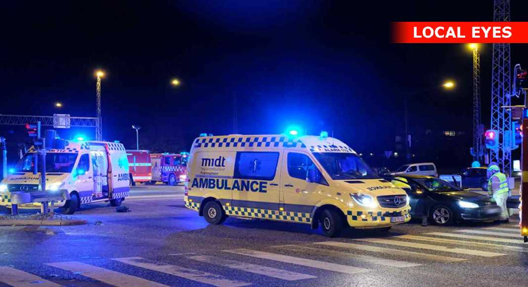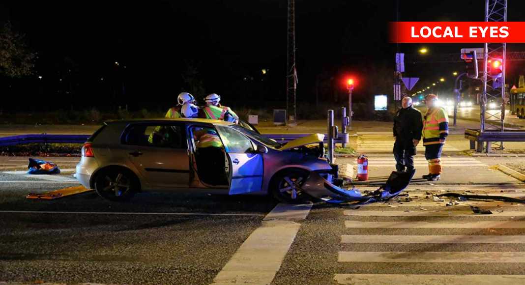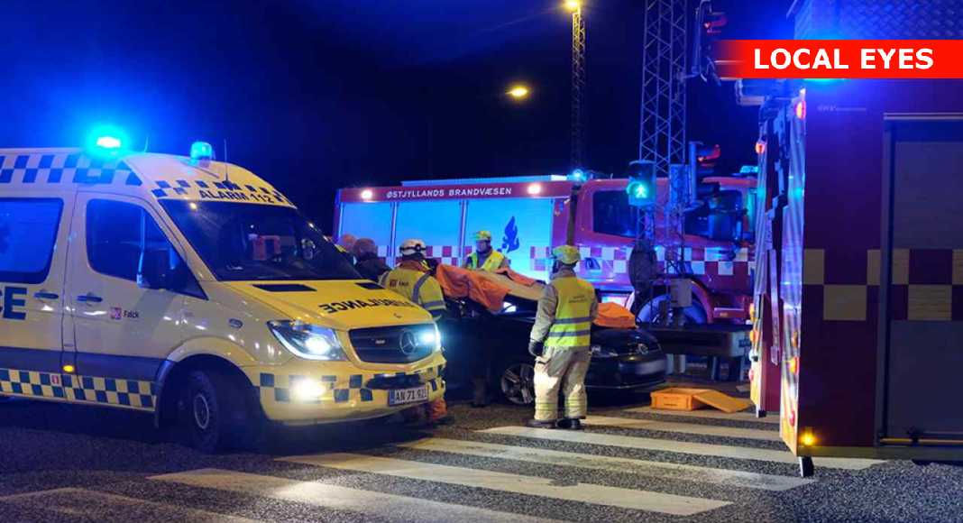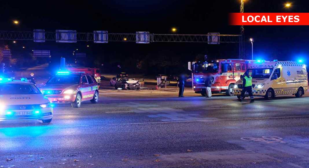 Vidner på stedet fortæller at begge biler kom i samme retning, og den forreste har bremset for gult lys, hvorefter den blev påkørt med sådan en kraft, at den blevet kastet helt over krydset.