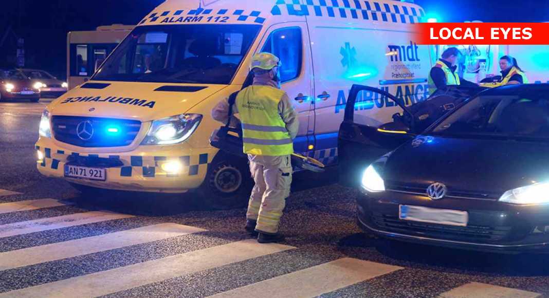 Ulykken skete kort efter klokken 22 søndag aften i det trafikerede kryds mellem Ringvejen og Silkeborgvej i Aarhus.