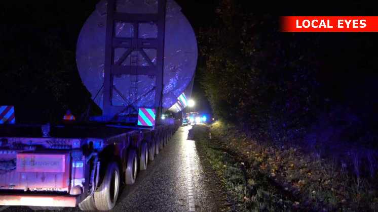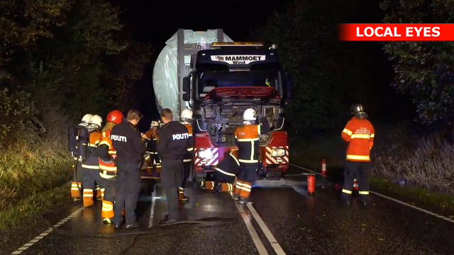 Lastbilen havde netop hentet en møllevinge i Give og var på vej til Esbjerg Havn, det skriver TV Syd.