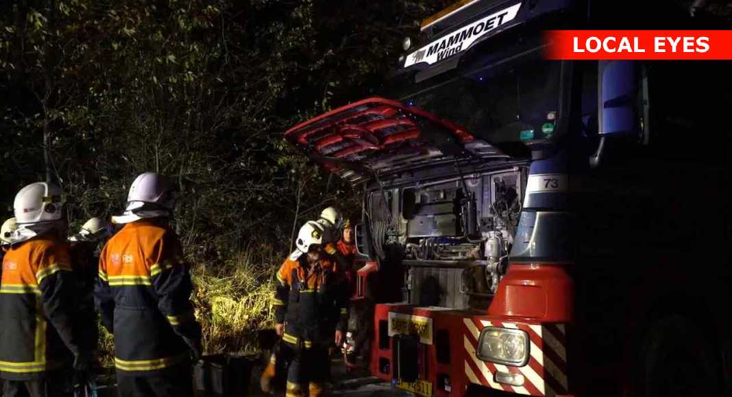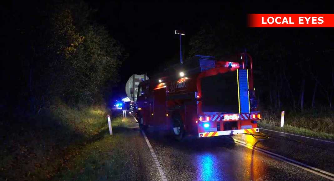 Flammerne og varmen nåede dog at få lavet et hul i tanken, der begyndte at lække dieselolie på stedet.