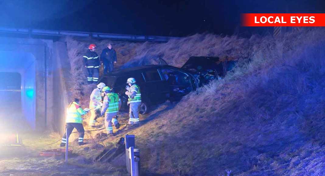 – Der går en skrænt ned, som bilen fortsætter ud over. Her flyver den fem meter over landevejen og lander på den anden side af landevejen, hvor den kiler sig ind i skrænten, siger vagtchef, Sydøstjyllands Politi, Jesper Brian Jensen til TV2 Østjylland.