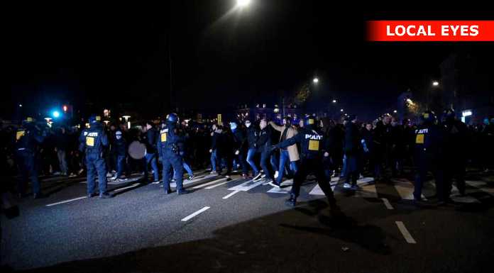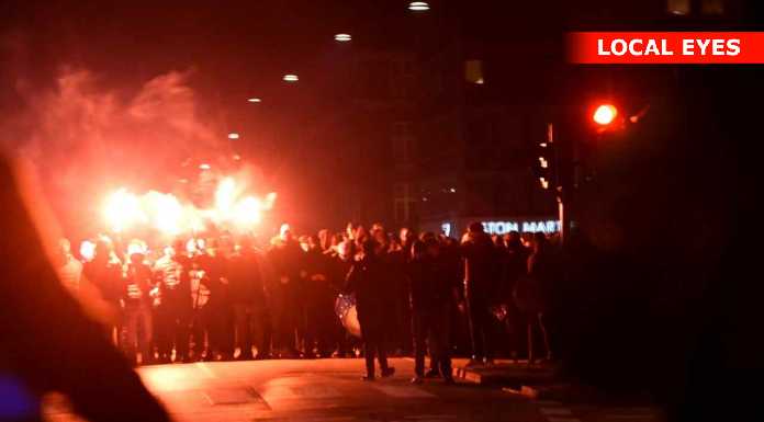 Urolighederne endte med otte anholdelser og fem sårede betjente, der måtte en tur på skadestuen.