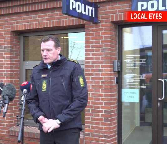 Politidirektør Frits Kjeldsen afholdte et kort pressemøde som følge af nattens tragiske hændelse hvor en politibetjent blev dræbt og en anden hårdt kvæstet i...