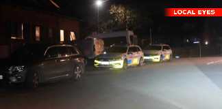 Ved en villa i Skibhuskvarteret i Odense, var politiet fremme med flere patruljer, torsdag aften.