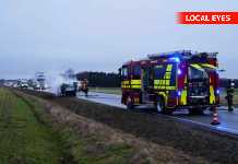 Ild i bil landevej spærret