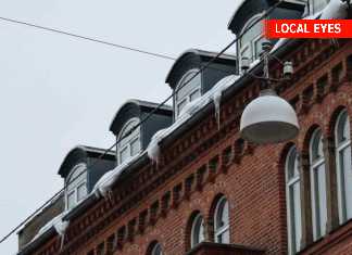 Ødelæggelser efter nedfalden sne og istapper på Godthåbsvej i Københavns politikreds