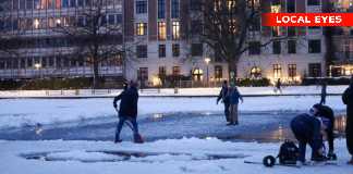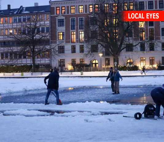 Isen er sikker på Peblinge Sø i København - og flere hundrede mennesker er ude på isen, bl.a. medlemmer af Kjøbenhavns Skøjteløberforening.img:m##743947##