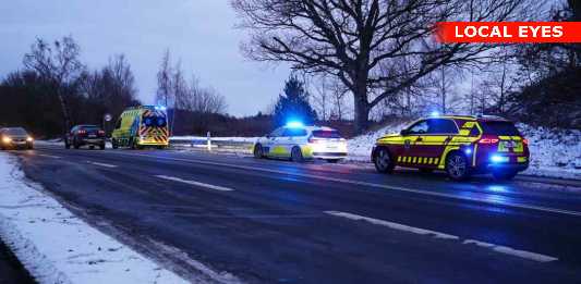 Sønderjylland: På vej 170 mellem Hoptrup og Haderslev fyger det voldsomt med store drive dannelserimg:m##742103##