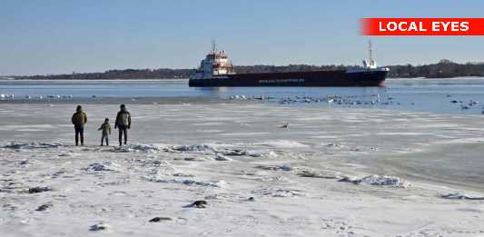 Coaster grundstødt ved Sølager: Nysgerrige render rundt på isen