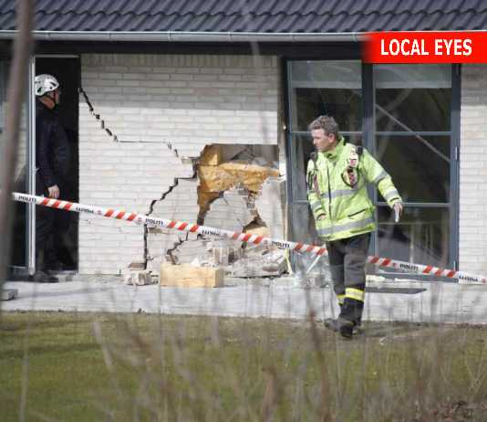 Bil kørt ind i hus – fare for sammenstyrtning
