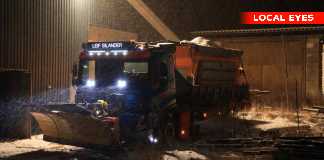 Kraftig snefald og snefygning i Kalundborg området