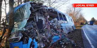 Voldsom ulykke: To dræbt da busser stødte frontalt sammen