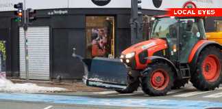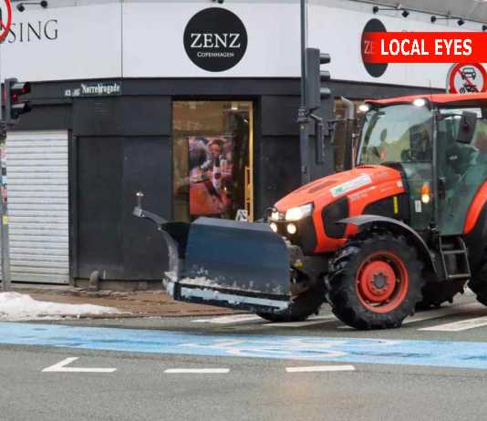 Sneploven er på gaden på Nørrebrogade søndag eftermiddag.- I Københavns Kommune har det for første gang i 15 år været nødvendigt at køre...