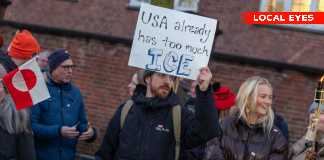 Grønlands demo foran den Amerikanske Ambassade i København
