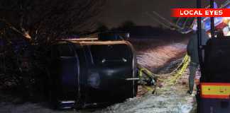 Hestetrailer med to heste i væltet på rute 23 ved Kalundborg