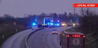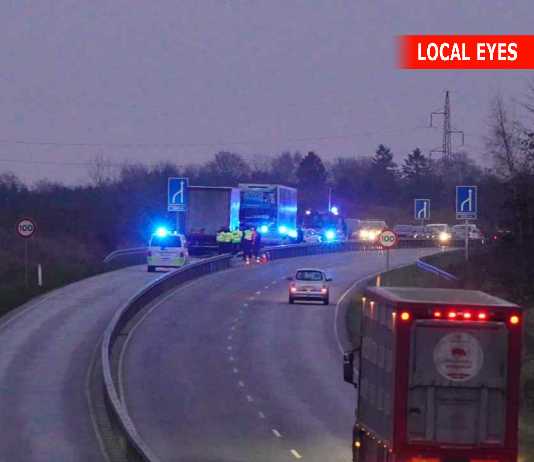 En lastbil er af ukendt årsag kørt gennem autoværnet og holder i modsatte spor torsdag aften. Politi er på stedet og vejen er helt...