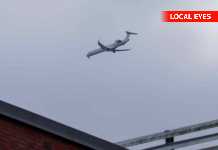 Der er hård vind fra sydøst indover Hovedstaden i dag - og passagerfly flyver lavt over byen. Her ses over Frederiksberg lørdag formiddag.Copenhagen Airport...