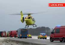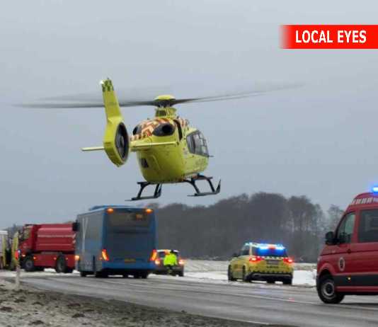 Helikopter på stedet : Hovedvej spærret af alvorlig ulykke