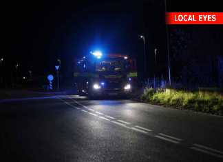Like localeyes.dk på FacebookRambuktyveriet gik ud over Danske Bank, hvor gerningsmændene kort før klokken 02.30 kørte en gummiged gennem facaden. Derefter kørte de af sted med bankens hæveautomat.
