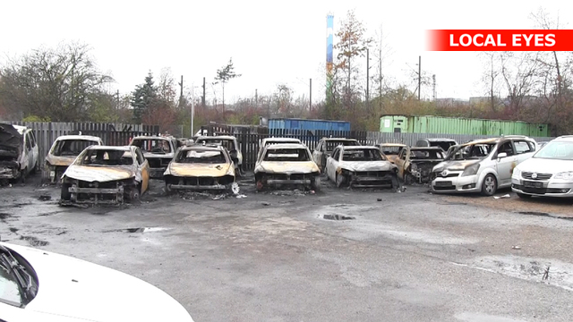 En voldsom bilbrand hærgede en bilforhandler på Rugvænget i Taastrup, over 10 biler forsvandt i branden.