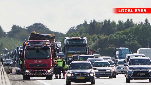 Et uheld på Vejlefjordbroen skaber mandag eftermiddag voldsom kø i nordgående retning på E45.