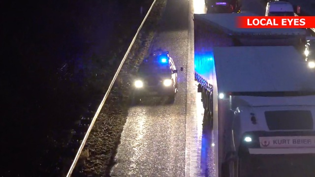 Da lastbilen kun spærrer en enkelt vognbane, giver den ikke anledning til trafikale problemer.