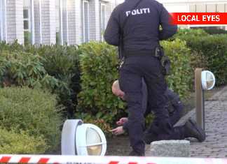 Derfor spørger Kevin en mand med sort frakke og rødt slips om vej til lobbyen: