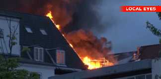 Kraftig brand på tagterrasse i Slagelse midtby
