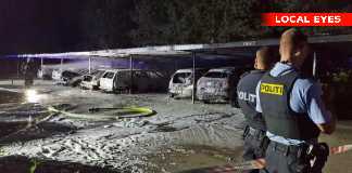 Ni biler brænder ud ved Værebroparken i Bagsværd