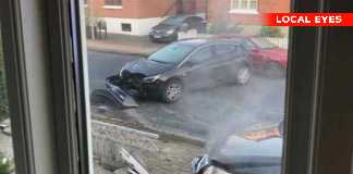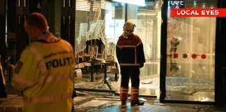 Brand i storcenter: Bil hamrede ind gennem indgang