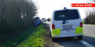 Bus med skolebørn væltede ved Juelsminde