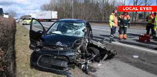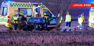 Voldsom haglbyge gjorde veje spejlglatte – bilist hamrede ind i træ