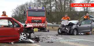 Tre personer kvæstet – voldsom ulykke spærrer vej