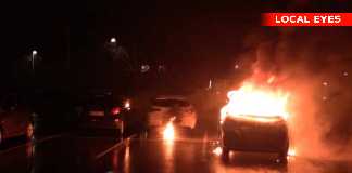 Civil politibil beskudt med fyrværkeri i Slagelse Søndag aften