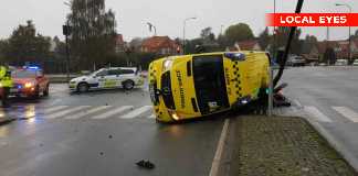Ambulance med udrykning væltet rundt – blev torpederet af bilist