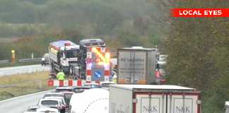 Uheld på motorvej midt i juletrafikken. Motorvejen kortvarigt spærret