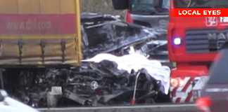24-årig kvinde mast ihjel imellem to lastbiler
