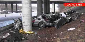 Bil kørte ind i betonpille på motorvej: Motorblokken fløj flere meter...
