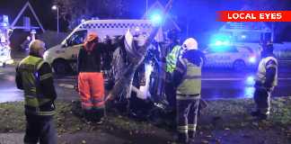 Alvorlig trafikulykke i Brøndby: Bilist klippede træ