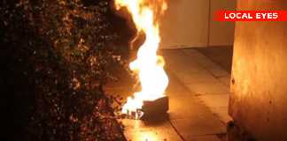 Psykisk syg smed brændende benzindunk ud af vinduet