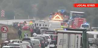 Tre kvæstet: Lastbiler i massesammenstød på motorvej