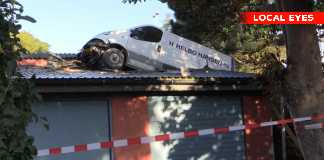 Tv: Varebil landede på garagetag