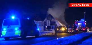 Stor gårdbrand med massiv røgfane ved Grønnemose