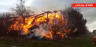 Stor gårdbrand med massiv røgfane ved Grønnemose