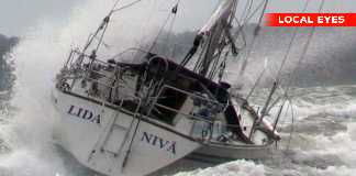 Coaster grundstødt ved Sølager: Nysgerrige render rundt på isen