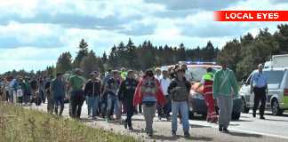 300 flygtninge vandrer på sønderjysk motorvej